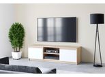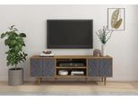 Mit zwei geschlossenen Fächern bietet das Lowboard ausreichend Platz für Spiele, Bücher oder andere Gegenstände, die du ordentlich verstauen möchtest. In den offenen Fächern findest du außerdem Raum für TV-Equipment oder persönliche Deko, um dein Wohnzimmer individuell zu gestalten.